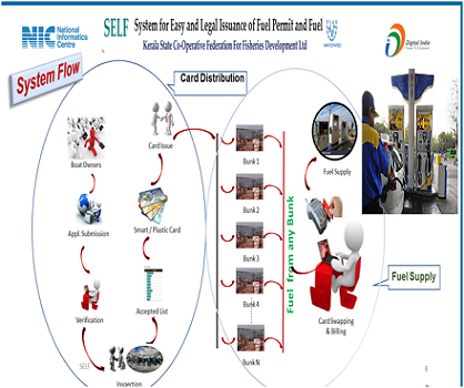 SELF is an work flow based integrated system, integrated with ReALCRAFt,FIMS , SAGARA to streamline the fuel card distribution to the registered vessel owners and fuel distribution to the valid fuel permit holders.And also providing total integrated end to end solution to the Fisherman.